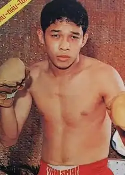 In professional boxing he was Thailand lightweight champion in 1975 and was top 10 ranked in the junior welterweight division by the WBA.[5]
