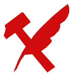 Quill and hammer, traditional symbol of popular socialism in Czechoslovakia and Yugoslavia, that also represents association with the Radical current, as it shares its symbolism with the Radical Civic Union in Argentina.