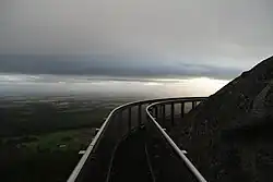 Tourism based on the Porongurup Range's giant karri forests is limited by the difficulty of access because the nearest public transport is in Albany or Mount Barker. The mountain range includes Castle Rock, a popular climbing destination, and the Devils Slide. The Granite Skywalk is a suspended walkway that spirals around the granite outcrop of Castle Rock in Porongurup National Park.[6][7] Eucalypt forest and rounded granite knobs and boulders give way to views over the Stirling Range and towards Esperance.