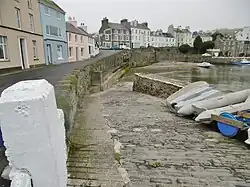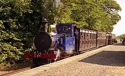 Port St Mary Railway Station (Manx: Stashoon Raad Yiarn Phurt Le Moirrey) is a station in Port St Mary in the south of the Isle of Man and is served by the Isle of Man Railway, having first opened in 1874 when the line to nearby Port Erin was completed. It forms part of the sole remaining section of the railway which once covered a network of some 46 miles across the island. The station is less than a mile away from the terminus and has no passing loop or run-round facilities, but a siding serving the goods shed was lifted in the 1979 but reinstated in 2002 at the same time as the whole of the permanent way was replaced along the line. When reinstated, the siding was not connected to the imposing goods shed, however in the winter of 2007/2008 rail connections were restored. A second siding which once served the rear of the shed was removed in 1974 and has not been replaced. Both sets of facing points were on the northern approach, the second lifted siding running parallel to the shed access as far as the exterior loading platform.