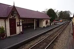 Today's impressive two-storey station building would lead the casual observer to think it to be the railway's terminus which is in fact just under a mile away at Port Erin; it was constructed by a local firm in 1898 to serve the large demand of tourists for whom the village was a popular resort. It is the only "proper" station on the line to not have a passing loop, owing to its close location to the southern terminus. The station remains under the ownership of the railway but has been largely out of use. In 1980 the station was converted by the company Campamarina for use in conjunction with their Trailblazers holiday scheme and was used as a hostel (the buildings at Castletown Station were similarly treated at the same time). At this time the railway passed over the use of the whole building, and the station staff were subsequently housed in a garden shed-type structure on the platform. When the usage change, the canopy structure that runs parallel to the platform was bricked in and remains so today, although latterly the station master is once again housed in the building itself, albeit in a smaller office using part of the original ladies' waiting room. The ground floor consists of a large reception room with open fireplace and toilet facilities; formerly there was a refreshment room.