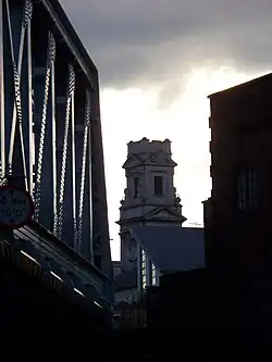 Shoreditch Town Hall silhouetted between the bridge carrying the future East London Line to Hoxton and a former warehouse on Kingsland Road. Ugly, but dramatic. โ iridescent 17:49, 24 March 2009 (UTC)