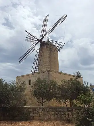 A windmill is a machine operated by the force of wind acting on vanes or sails to mill grain (gristmills), pump water, generate electricity, or drive other machinery. Windmills were used throughout the high medieval and early modern periods; the horizontal or panemone windmill first appeared in Persia during the 9th century, and the vertical windmill first appeared in northwestern Europe in the 12th century. Regarded as an icon of Dutch culture, there are approximately 1,000 windmills in the Netherlands today. (Full article...)