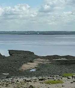The Severn is noted for its extreme tidal range. This means that there are few safe crossing points for a ferry, the New Passage Ferry being the deeper channel downstream of the Dun Sand and upstream of the English Stones.[1] This passes between New Passage Pier in Gloucestershire and Black Rock in Monmouthshire, approximately the line of the Second Severn Crossing. The other crossing in the area is upstream at the Old Passage Ferry, from Aust to Beachley, approximately the line of the earlier Severn Bridge. This crossing goes from England to England, as it is still slightly upstream of the confluence with the Wye below Chepstow,[i] and so a crossing to here would still require traffic to cross the Wye on its way to Cardiff.