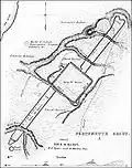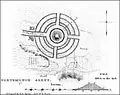Originally, the Portsmouth Earthworks consisted of three sections extending over twenty miles of the Ohio River valley, crossing from Ohio to Kentucky in several places. It was surveyed and mapped by E. G. Squier in 1847 for inclusion in the seminal archaeological and anthrolopological work Ancient Monuments of the Mississippi Valley.[3]