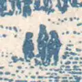 On genuine stamps, the group of three people standing near the center of the stamp are all equal height and clearly visible. On forged stamps, the left-most person is shorter than the other two and is possibly touching the person to the right.[1][8][9][11]
