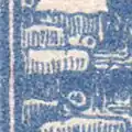 Forged 3h (blue) values are known two contain two variations depending on plate position. Odd numbered positions in the forged sheets contain a small blot northwest of the letter P and a dot below rk.[3] Even numbered positions contain a dot on the left side of the center of the right numeral 3, dots below e, and often above s.[3]