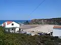 The main beach of Praia de Odeceixe is situated at the mouth of the Rio de Seixe (River Seixe), right on the border between the Algarve and the Alentejo. This sandy beach is on the southern side of the outflow to the sea. The northern side of the river has a backdrop of steep cliffs which shelter the beach.[4] To the south of the main beach is a small cove with a sandy satellite beach called Praia de Adegas which has been designated a naturist beach.[5] Also to the south of the main beach is the small village of Praia de Odeceixe, from where a steep path descends to the beach.