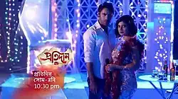 Pratidaan (Bengali: প্রতিদান); was a Bengali television soap opera that premiered on 21 August 2017 and aired on STAR Jalsha. Produced by Boyhood Productions, it starred Sandipta Sen[1] and Rezwan Rabbani Sheikh[2] in lead roles, with Rukma Roy[3] and Debraj Mukherjee in negative roles. It replaced Star Jalsha's show Milon Tithi. The show went off air on 23 December 2018 and was replaced by Bhoomikanya.