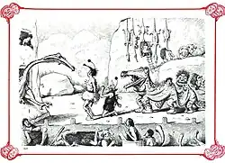 In the 1880s, parodies and cartoons of cavemen became popular. In 1893, cartoonist Edward Tennyson Reed launched the cartoon series Prehistoric Peeps in the British humor magazine Punch.[3] One of Reed's best known drawings depicted a caveman tribe playing cricket at Stonehenge, using the monument's stone arches as wickets. The drawing inspired a humorous hoax. The hoaxer carved a mammoth bone into a cricket bat. Then the bat was planted at Piltdown, Sussex, alongside a forged fossil skull. It was implied to be the earliest Englishman, buried with the earliest cricket bat. This joke became known as the Piltdown Man.[3]