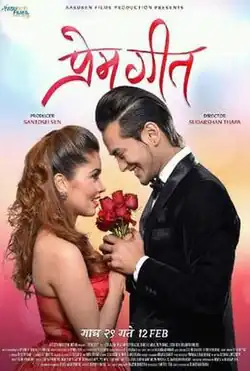 Prem Geet is a 2016 romantic film directed by Sudarshan Thapa in Nepal. The film was produced by Santosh Sen & Hari K C and features Pooja Sharma and Pradeep Khadka in lead roles. The film was released on Valentines Day 2015. The film met with positive responses from critics and audience. The film was a commercial success. The film marked turning point in career of the lead actor Pradeep Khadka and Pooja Sharma and made them huge stars. The movie earned much of the investment on its first week of release.[2][3][4][5][6]