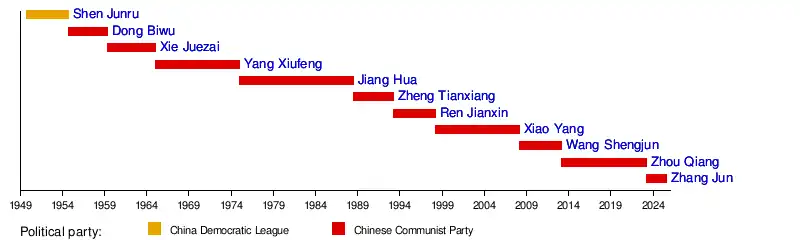 According to the Judges Law of the People's Republic of China, the president of the SPC is the chief justice of the People's Republic of China.[5]