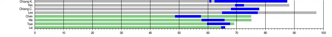 This is a graphical lifespan timeline of the presidents of the Republic of China (post-1947 Constitution) and they are listed in order of office.