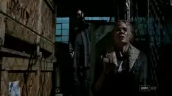 Andrea keeps ahead of the Woodbury search team while avoiding walkers. She soon finds that the Governor is close behind her, and she ducks inside an abandoned factory to hide. The Governor tracks her down, but she manages to set several walkers on him as she escapes. She finally nears the prison, seeing Rick outside, and is about to wave to him, when the Governor, having escaped the factory, grabs her from behind and silences her. Rick, who has been suffering hallucinations of dead companions, believes this was yet another such incident.
