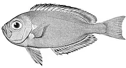 6. ^ Christopher Scharpf & Kenneth J. Lazara (22 September 2018). "Order ACANTHURIFORMES (part 3): Families CALLANTHIIDAE, DINOPERCIDAE, EMMELICHTHYIDAE, MALACANTHIDAE, MONODACTYLIDAE, MORONIDAE, SILLAGINIDAE, PRIACANTHIDAE and CEPOLIDAE". The ETYFish Project Fish Name Etymology Database. Christopher Scharpf and Kenneth J. Lazara. Retrieved 27 January 2025.