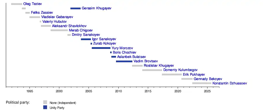 20 June 2022 | Incumbent | 3 years, 58 days | Independent | Alan Gagloev (2022–present) |