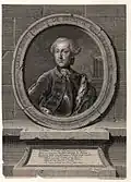 11. ^ Genealogie ascendante jusqu'au quatrieme degre inclusivement de tous les Rois et Princes de maisons souveraines de l'Europe actuellement vivans [Genealogy up to the fourth degree inclusive of all the Kings and Princes of sovereign houses of Europe currently living] (in French). Bourdeaux: Frederic Guillaume Birnstiel. 1768. p. 16.