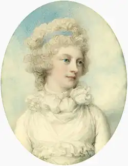 Princess Sophia, c. 1792. This portrait miniature, painted by Richard Cosway, is believed to have been commissioned by Sophia's brother the Prince of Wales.[17]