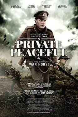 Private Peaceful is a 2012 British war drama film directed by Pat O'Connor and starring Jack O'Connell and George MacKay. It is based on the 2003 novel of the same name by Michael Morpurgo.[1][2] The film marks the final released performance of Richard Griffiths as well as his last credited film before his death the following year.[3][4]