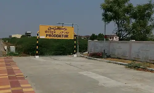 Proddatur railway station[1] is the primary railway station serving Proddatur city in the Indian state of Andhra Pradesh. The station comes under the jurisdiction of Guntakal railway division of South Coast Railway zone. A new railway line connecting Nandyal city commissioned recently[2]