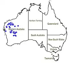 This mintbush grows along watercourses in the Carnarvon, Gascoyne, Little Sandy Desert, Murchison, Pilbara and Yalgoo biogeographic regions of inland Western Australia.[2][3]