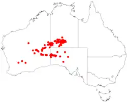 Prostanthera sericea grows on stony hills, in rocky gorges and on sand dunes and sandplains in the east of Western Australia, southern Northern Territory and western South Australia.[2][3][5]