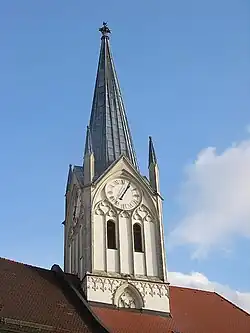 The town parish of St Nicholas was revived in 1959. The former canons' church serves as the parish church and also the university church. Its furnishings are mostly modern, with works by Wolf Hirtreiter, but also with Gothic paintings and Baroque figures. The tower, which was demolished in 1815 because of its dilapidation, was restored in 1990-1993.