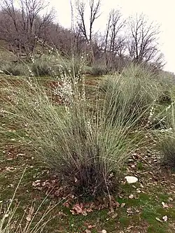 It prefers to grow in arid or semiarid areas at 500 to 2700 m above sea level. A full genetic and morphological analysis suggests that Prunus scoparia may be conspecific with it; certainly it is its closest relative.[4] It is occasionally cultivated for erosion control, as its brushy growth form makes a good windbreak.[5][6]