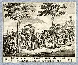 Salm left Utrecht on Saturday evening, 16 September, and hurried to Uithoorn and Ouderkerk aan de Amstel, without giving battle.[45] On Thursday, September 20, 1787, the Stadtholder and his wife arrived in The Hague.