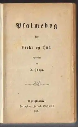 Psalmebog for Kirke og Hus (Hymnal for Church and Home), better known as Hauges Salmebok (Hauge's Hymnal), was a Norwegian hymnal created by Andreas Hauge. On October 11, 1873, it was authorized for use in public worship in Norway by congregations that adopted it.[1][2]