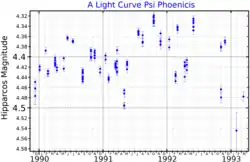 Psi Phoenicis (ψ Phoenicis) is a star in the constellation Phoenix. Its apparent magnitude varies from 4.3 to 4.5 with a period of about 30 days.[3] It is visible to the naked eye. It is approximately 342 light years away based on parallax.[1]