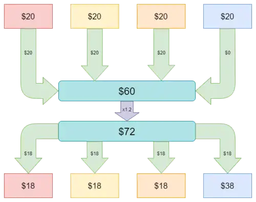 Consider a group of individuals consists of n identical individuals. Each individual is endowed with M tokens and must decide how much tokens to allocate to a public "pot" (public good).