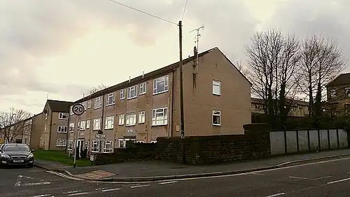 The station and the line in its entirety were closed to all traffic on 15 June 1964.[1] The site of the former station is now occupied by housing, and the cutting in its vicinity has been filled in for the most part. A bus stop is located next to the bridge across the former railway line. Pudsey is now served by the station New Pudsey on the Calder Valley Line, opened on 6 March 1967 and located about 1 mile (1.6 km) north of the town centre.