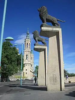 The Puente de Piedra is also called the Bridge of Lions because since 1991 four lions (symbols of the city) have been placed on the pillars at each end of the bridge. The lion statues were designed by Francisco Rallo Lahoz.