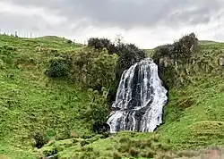 Waiteti Stream waterfall, beside the line, about 2km north of Puketutu