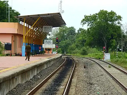 Puliyankulam railway station (Tamil: புளியங்குளம் தொடருந்து நிலையம் Puḷiyaṅkuḷam toṭaruntu nilaiyam, Sinhala: පුලියන්කුලම් දුම්රිය ස්ථානය) is a railway station in the town of Puliyankulam in northern Sri Lanka. Owned by Sri Lanka Railways, the state-owned railway operator, the station is part of the Northern Line which links the north with the capital Colombo. The popular Yarl Devi service calls at the station. The station was not functioning between 1990 and 2013 due to the civil war. The Northern Line between Omanthai and Kilinochchi, which includes Puliyankulam, was re-opened on 14 September 2013.[1][2]