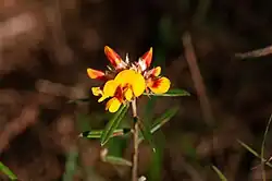 Pultenaea paleacea, commonly known as chaffy bush-pea,[2] is a species of flowering plant in the family Fabaceae and is endemic to eastern Australia. It is a prostrate to spreading shrub with linear to lance-shaped leaves with the narrower end towards the base, and yellow to orange and red to purple flowers.
