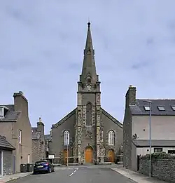 Wick Central Church united with the Wick West Church (now demolished) in Francis Street in 1950. In 1862 a steeple was added to the building as well as a tower which featured a bell which was said to have been loud when active. The interior woodwork and pews were dark brown. The Kirk featured a balcony and five stained glass windows. Three of the windows were donated to the Kirk in the 19th century by members of the Church; the other two to the front of the Church were inserted when the structure was completed. The manse is located at 30 Thurso Road, where the last minister Rev. Hamish Cormack stayed until the Kirk's closure.