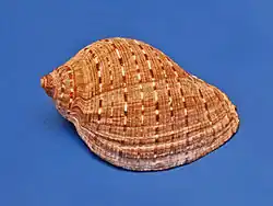 The shell size of Purpura persica varies between 60 mm and 110 mm.[2] It is a large and thick shell, with large body whorl and a very expanded aperture. The surface shows a chocolate-brown color and it is sculptured with spiralled, beaded cords.[1]