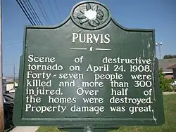 The Purvis School System's mascot is a tornado as a testament of the courage of those who endured the Tornadoes of 1908, which changed the face of the emerging town, and in honor of those who lost their lives that day.
