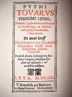 • Putni tovarus / vnogimi lipimi, nouimi i pobosnimi molituami iz nimskoga na heruaczki jezik isztomachen i spraulyen po meni groff Frankopan Catharini goszpodina groffa Petra Zrinszkoga hisnom touarussu, digitalna.nsk.hr