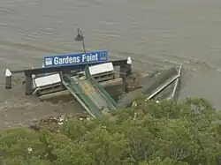 The wharf was destroyed during the January 2011 Brisbane floods.[3] A temporary replacement opened on 18 April 2011.[4][5] The temporary wharf closed in early 2015 to allow a new permanent wharf to be built. The new wharf opened on 24 April 2015.[6] The terminal was damaged in the 2022 eastern Australia floods and reopened on 1 November 2022.[7]