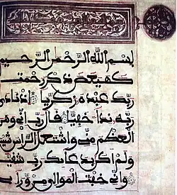 Page of a Quran transcribed in mabsūt Maghrebi script in Libya at the end of the Karamanli period.[4]This page is preserved at the Libyan centre for archives and historical studies.