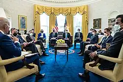 Joe Biden participates in a bilateral meeting with Sheikh Tamim bin Hamad Al Thani, January 2022