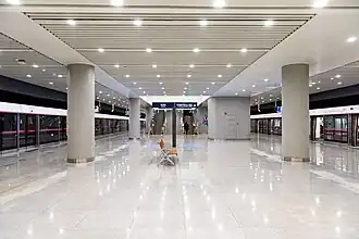 The station on Changping line of Beijing Subway opened on December 31, 2021.[9] The station for Changping line is underground. It was the southern terminus of the line until the extension to Xitucheng opened on February 4, 2023.