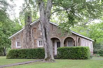 The Quattlebaum–Pelletier House is a historic house at 43 Ozark Street in Twin Groves, Arkansas. It is a single-story masonry structure, its exterior finished in a combination of fieldstone veneer and cream-colored brick. Built in 1942, it has many of the hallmarks of the work of Silas Owens Sr., a regionally prominent African-American mason, including an arcaded recessed porch, and the types of exterior materials used. Owens departed from his usually herringbone pattern for laying the stone on the walls, instead using longer and thinner sandstone in a geometric pattern.[2]