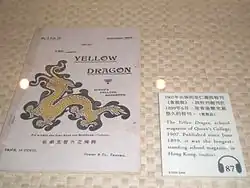First published in June 1899, the Queen's College school magazine, The Yellow Dragon (黃龍報), is the world's oldest existing Anglo-Chinese school magazine. A priceless historical resource, it provides a window into the evolution of education in Hong Kong and on societal evolution in the Asia Pacific region. In 2005, the magazine published its 100th volume. The Chinese section of the edition featured a brief summary of the magazine's past 100 volumes (百期回望專輯), written by seven students to commemorate the special occasion.