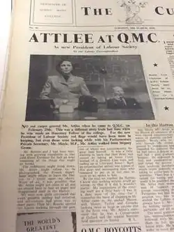- Joshua Peck, the Bow West Councillor, was President of the Queen Mary Labour Society when a student at the University.[4]