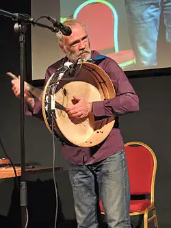 Rónán Ó Snodaigh (born 1 January 1970 in Dublin, Ireland) is a songwriter, composer, musician, poet and founding member and lead vocalist in the musical group Kíla. He has revolutionised the playing of the bodhrán and written many songs in Irish and English. He has written and released seven solo albums.