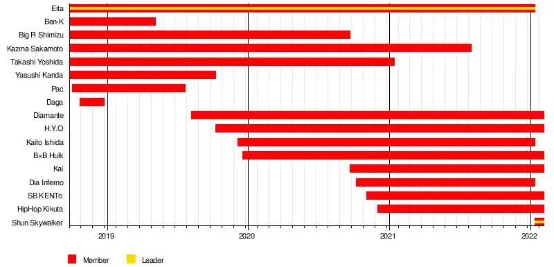 The group was formed on September 24, 2018 by former Antias members Ben-K, Yasushi Kanda, Takashi Yoshida, Big R Shimizu, Eita and freelancer Kazma Sakamoto.[1][2] The group also included foreign wrestlers Pac and Daga, in which they represented the stable in other promotions.[3][4][5]